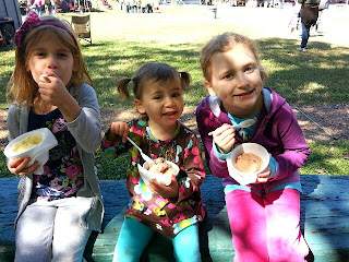 My mom and I took the girls to this a few weeks ago. I missed not attending the Ag Farm fall festival back home, but this definitely filled the void...maybe even more so. We learned a bit about life in Appalachia years ago, how they did things, listened to some sweet bluegrass music and the girls learned a little square dancing. We saw animals, bought some wonderful goat's milk soap, fresh sorghum syrup (my new favorite sweetener) and a few other goodies.